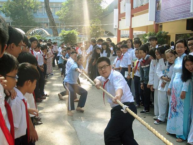 Nhưng vẫn không bằng buổi chiều. Dàn hs chiều cho thấy vì sao kéo co luôn là môn hấp dẫn nhất với thế giới học trò.