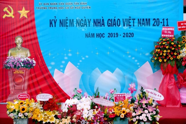 Sáng thứ tư, 20/11/2019 cùng với ngành giáo dục cả nước, trường THCS Ngô Quyền tưng bừng tổ chức lễ Kỷ niệm 37 năm Ngày nhà giáo Việt Nam (20/11/2019-20/11/2020). Đén dự lễ có đc Lê Ngọc Tuyết Xuân, Phó Bí thư Đảng ủy, Chủ tịch HĐND Phường 12 Quận Tân Bình.