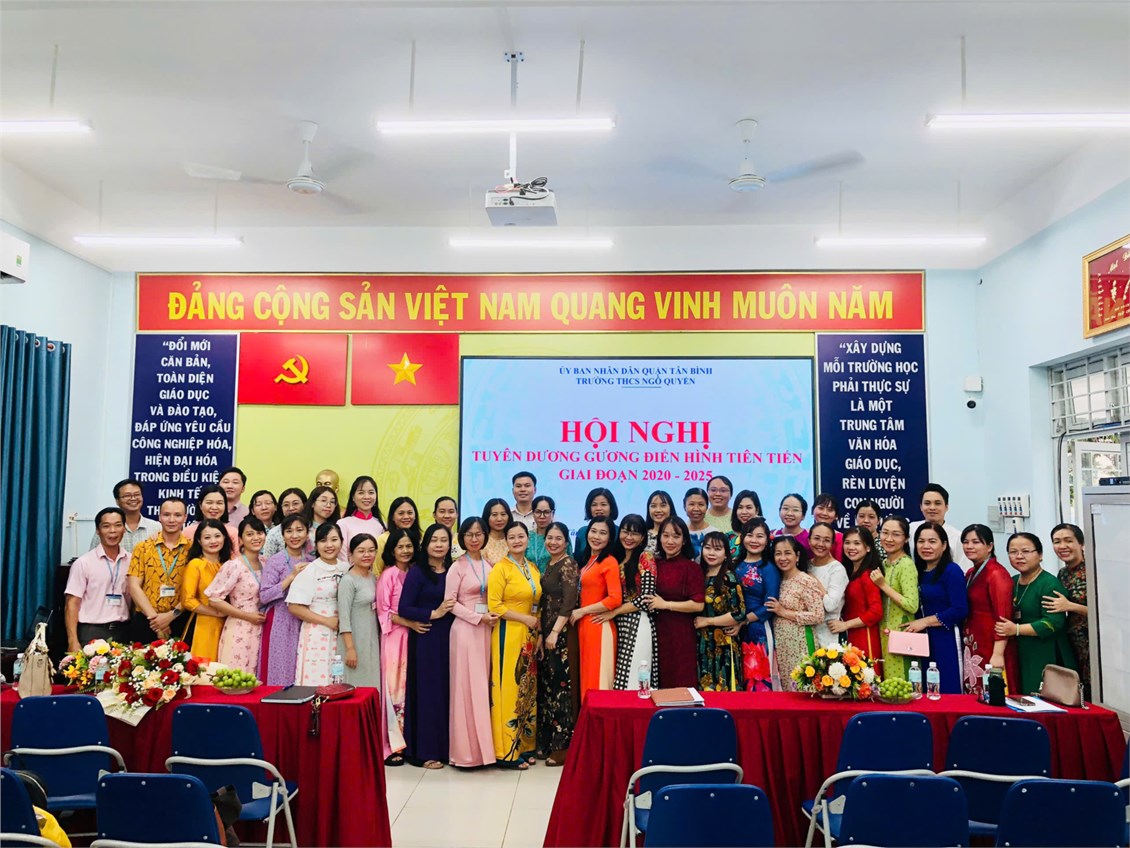 Cũng tại Hội nghị, các đại biểu cũng đã làm rõ những kết quả đạt được. chỉ ra những khó khăn vướng mắc từ đó chia sẻ kinh nghiệm, những cách làm hay trong quá trình thực hiện phong trào. Đồng thời Hội nghị cũng tuyên dương khen thưởng 01 tập thể và 02 cá nhân điển hình tiên tiến tiêu biểu trong phong trào thi đua giai đoạn 2020-2025 đó là Tập thể tổ Ngữ Văn và 02 cá nhân gồm cô Nguyễn Thị Thanh Xuân - Tổ trưởng chuyên môn Ngữ văn và cô Dương Hồ Kim Trâm - giáo viên Tổ Toán.